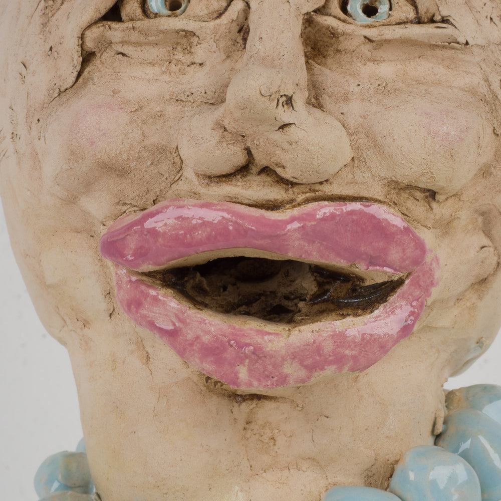 Sereen Beeld – Gezicht in Witte Klei door Kunstenares Sue (15,5 x 12 x 8 cm)