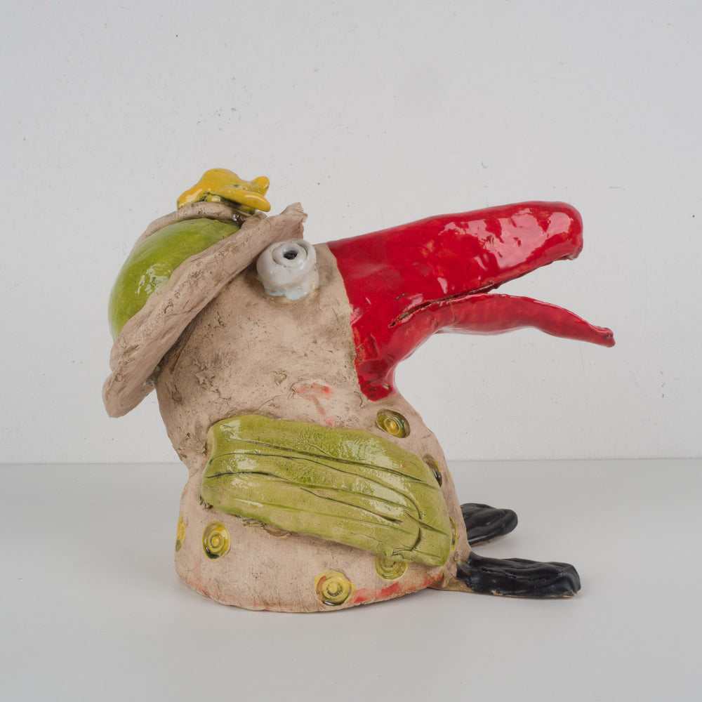 Handgemaakte ludieke keramische vogel – Met grote rode snavel