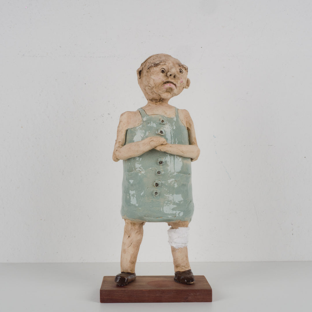 Handgemaakt beeld van een vrouw – lichtgroen geglazuurd, met sociaal engagement