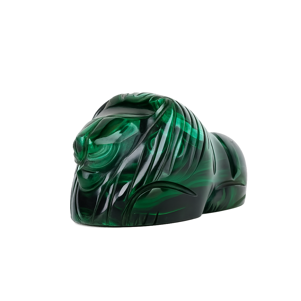De leeuw is doorheen de kunstgeschiedenis een symbool van moed, bescherming en leiderschap. In malachiet – een steen die traditioneel wordt geassocieerd met harmonie en transformatie – krijgt dit dier een extra symbolische laag. Hierdoor is dit niet enkel een decoratief object, maar ook een betekenisvolle toevoeging aan een interieur.