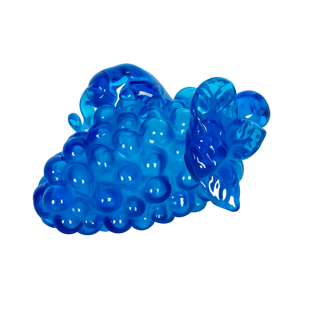 Druivenmotieven in glas waren bijzonder populair binnen het vintage design – ze verwijzen naar overvloed, gastvrijheid en levensvreugde. Dit stuk combineert die symboliek met een moderne, bijna pop-art uitstraling dankzij de intense blauwe kleur. Zowel solo gepresenteerd als in combinatie met andere glasobjecten creëert het een fris, tijdloos accent in elk interieur.