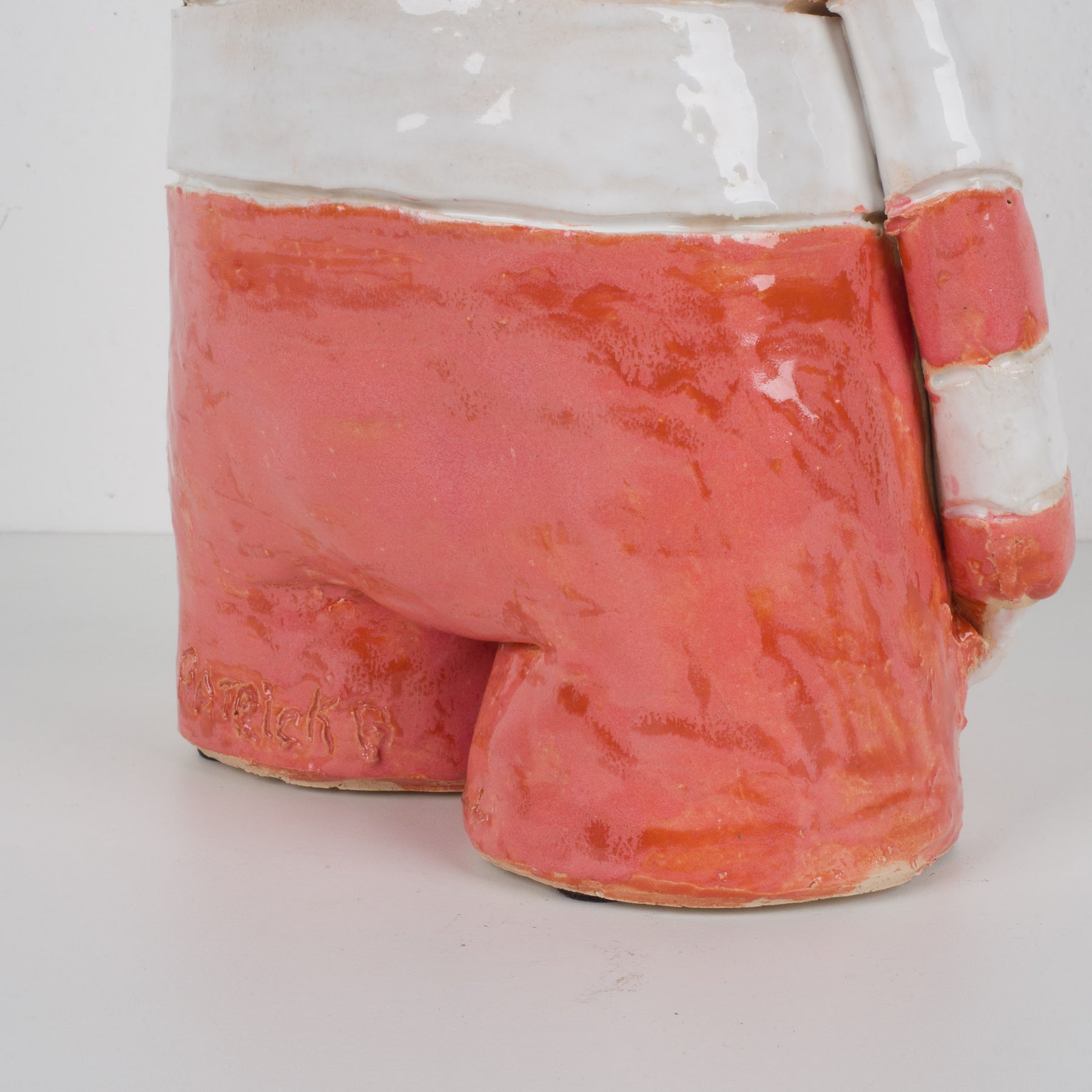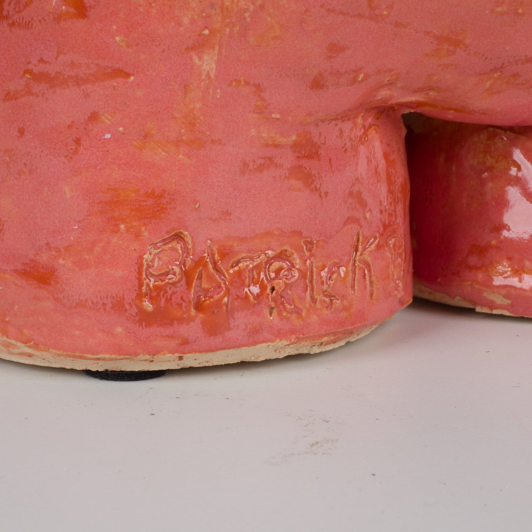 Achteraan links is het beeld gesigneerd “Patrick”, wat verwijst naar de maker Patrick Benoot, die werkt binnen een sociale instelling. Dit geeft het werk niet alleen artistieke waarde, maar ook een sociaal en menselijk verhaal. Elk stuk is met zorg en creativiteit vormgegeven, wat perfect aansluit bij de visie van De Tuin Der Kunsten: betaalbare kunst met een ziel, harmonieus geïntegreerd in het interieur.