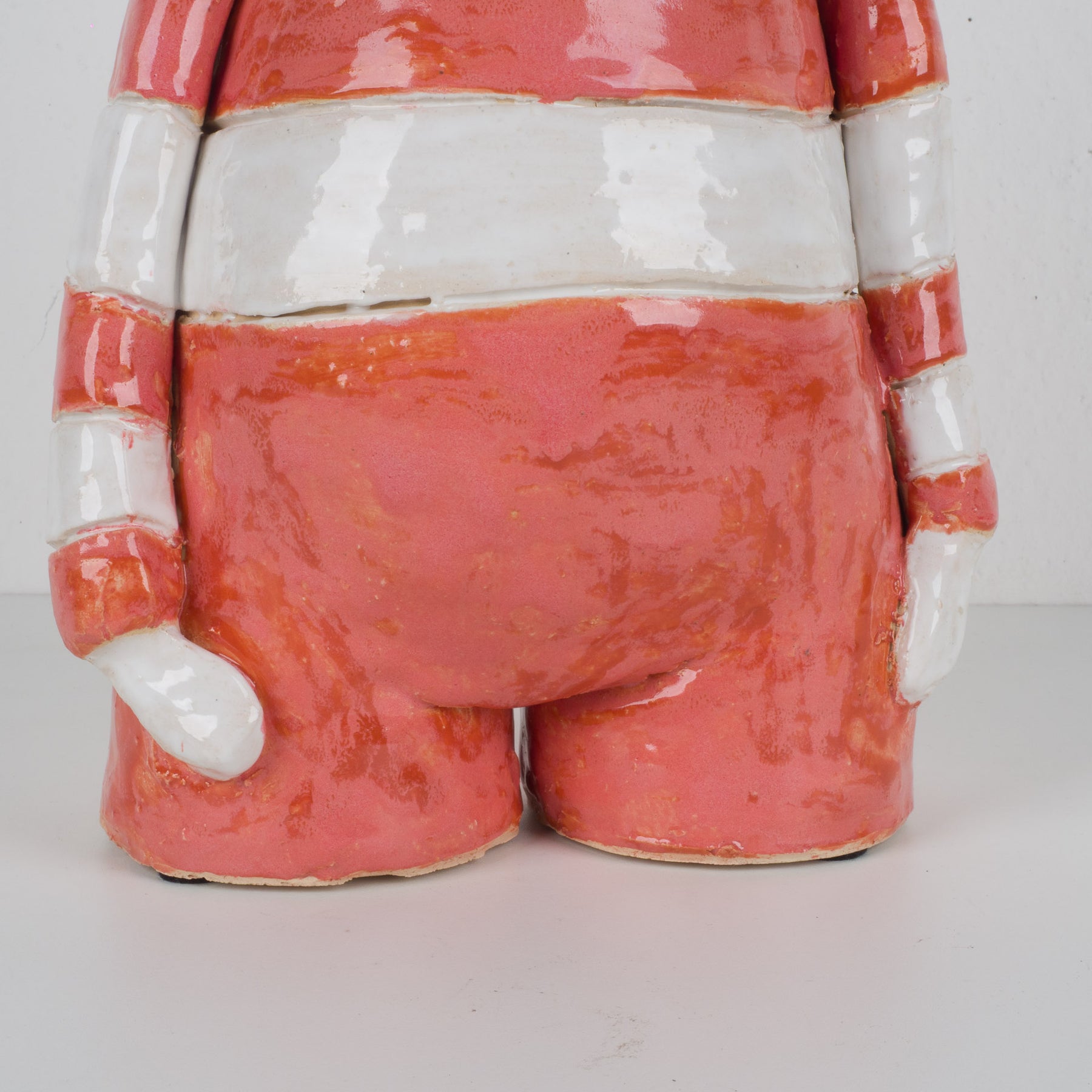 Dit charmante en speelse keramisch beeld van een duiker is een uniek kunstobject met karakter. Het beeld stelt een figuur voor in een zalmkleurig matrozenpakje, met een expressieve duikbril en een ontwapenende uitstraling. De combinatie van humor, eenvoud en ambacht maakt dit werk bijzonder aantrekkelijk voor wie houdt van originele, handgemaakte kunst.