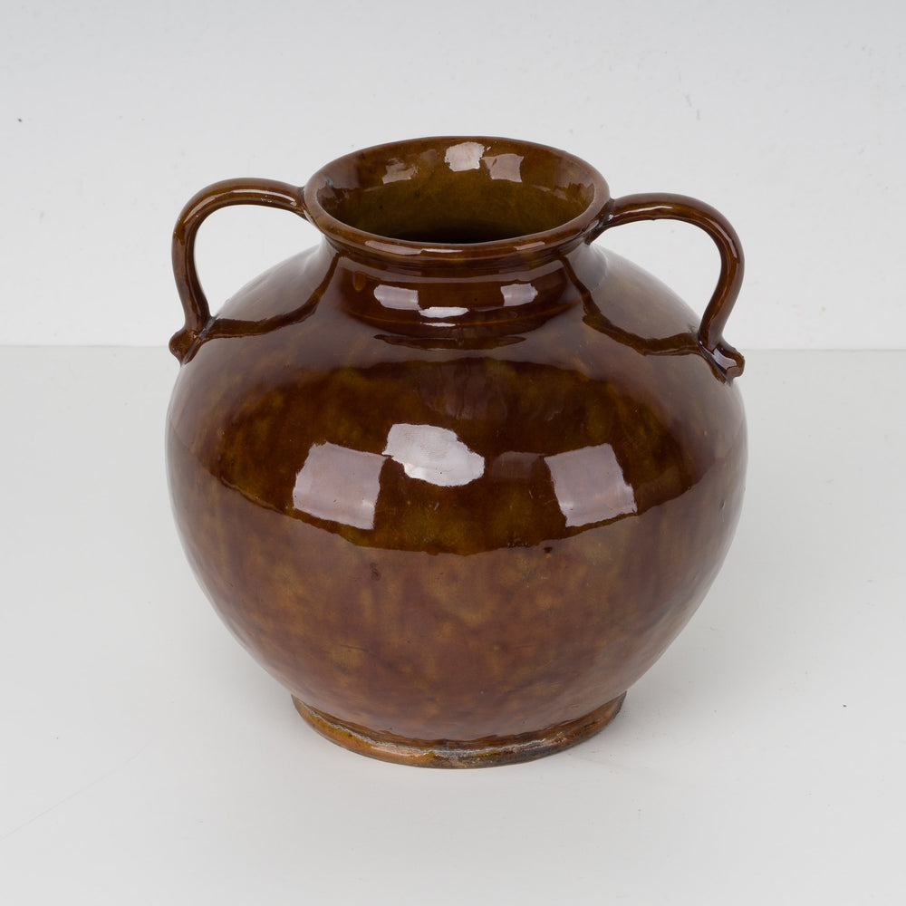 Keramische vaas R. Gery – Bruin geglazuurd aardewerk – 19x19x19 cm
