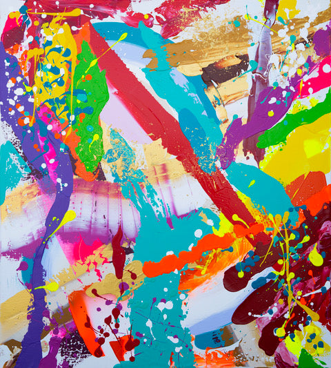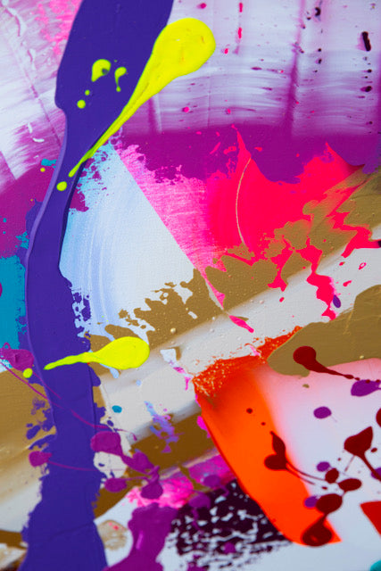 Abstract painting in fluorescent yellow 'Eternal Spring' by Jos Spinhoven