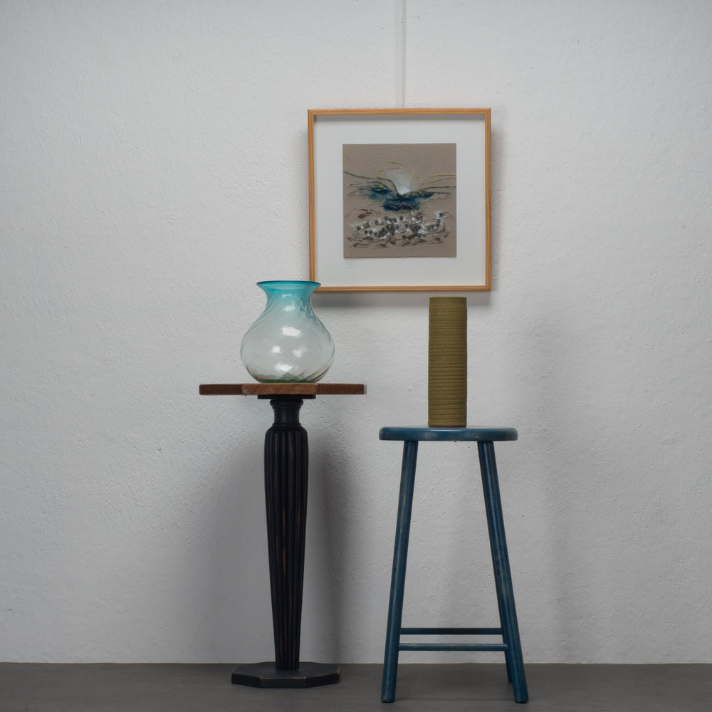 The centrepiece of this composition is the beautiful ceramic cylinder vase in a vibrant green colour, which perfectly matches the serene blue tones of the mouth-blown vase. Together they form a harmonious duo that adds a touch of natural beauty and refinement to your interior.