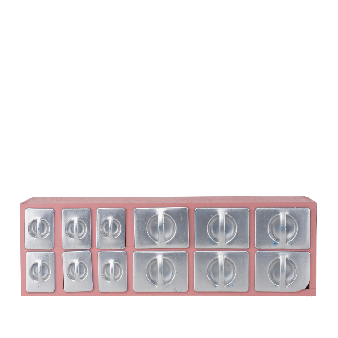 This interior combination is characterized by the interplay of the serene blue, which is beautifully expressed in the painting and the marble table, with the lovely pink of the vintage cabinet. These colors harmonize perfectly with each other and create a calming and stylish ambiance.