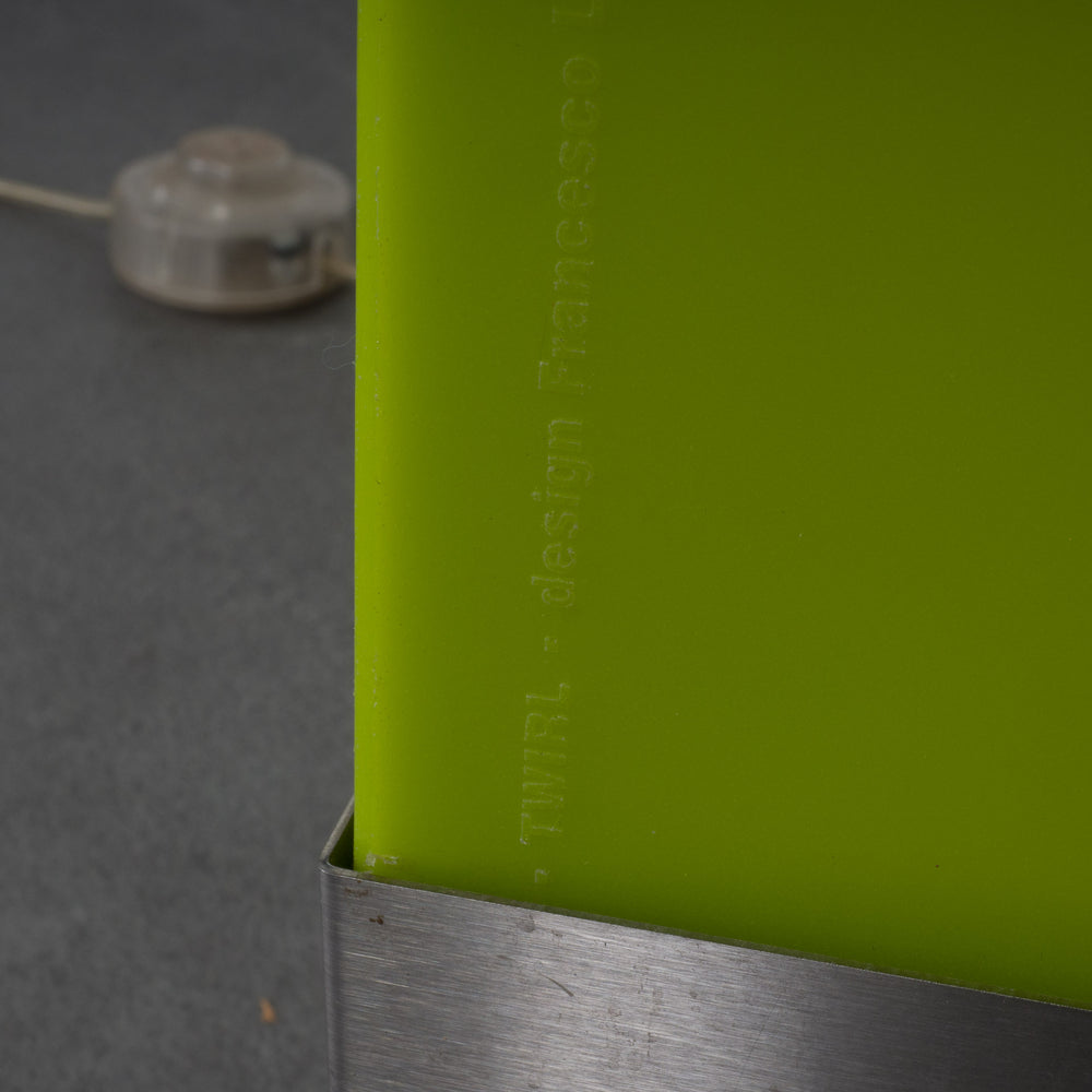 This beautiful interior collage elegantly combines the vibrant green, which is beautifully expressed in the large painting (1.3x1.3m) and in the design lamp by Francesco Lucchese, with the soft white and grey. The result is a harmonious and balanced composition of colours that creates a serene and contemporary look.