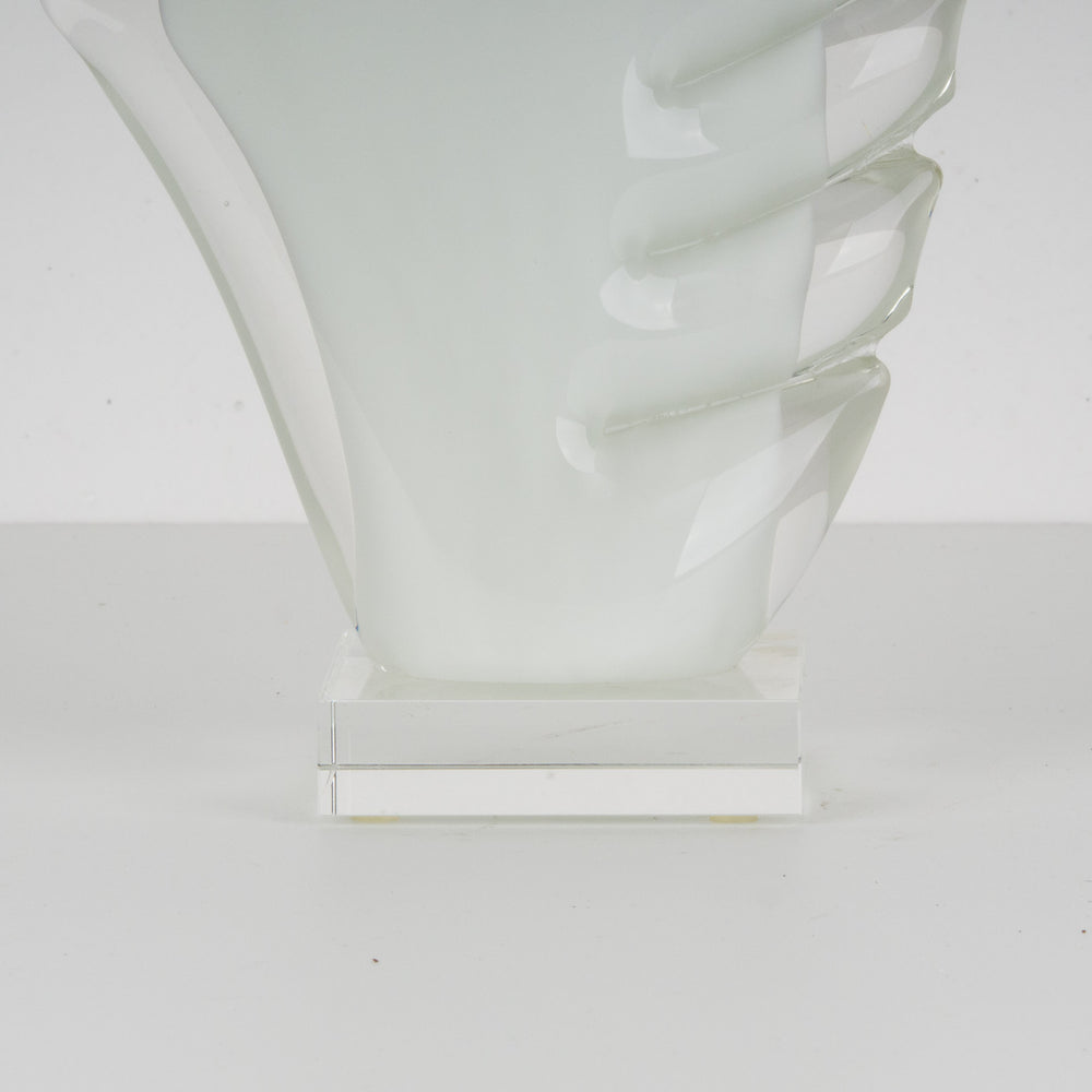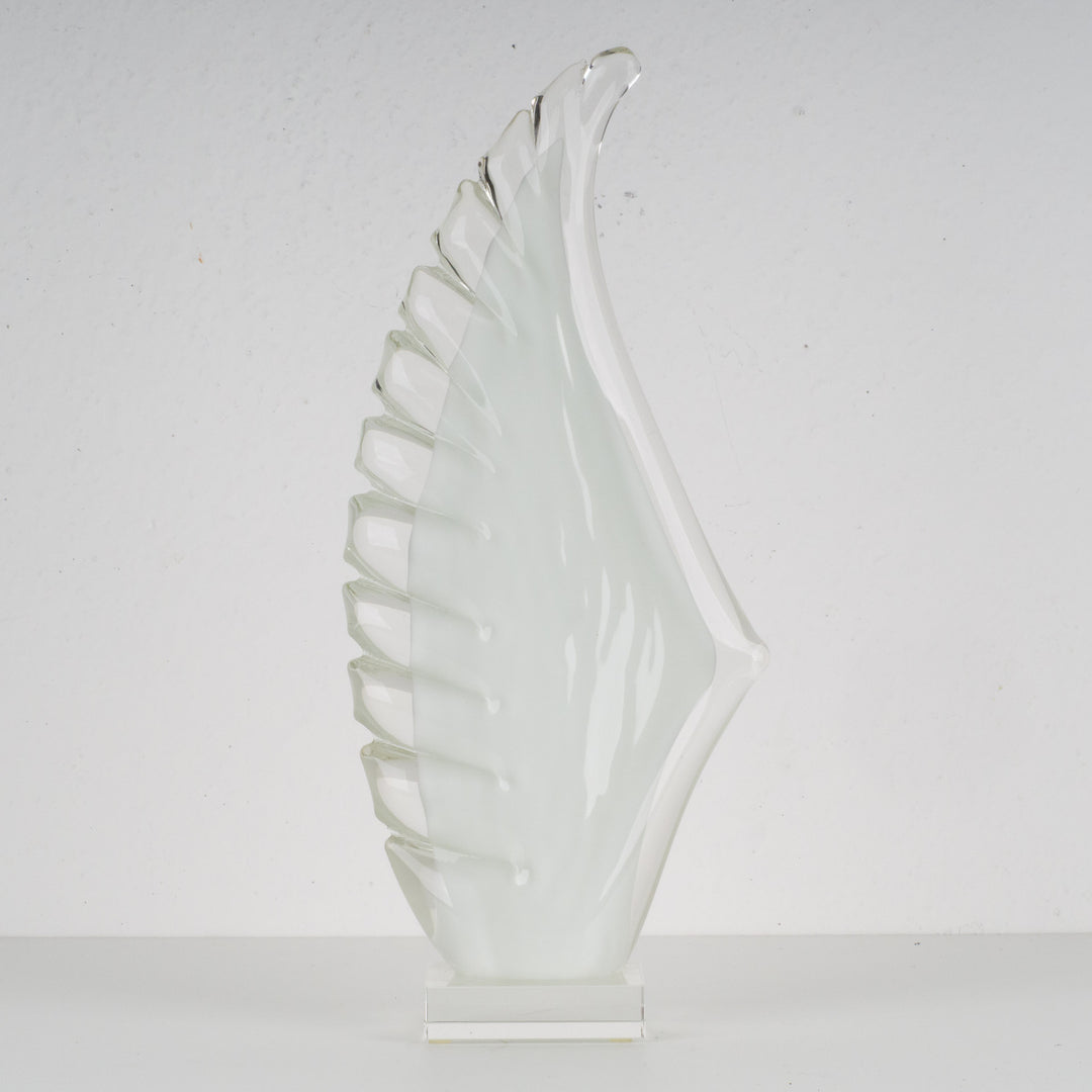 The addition of the white designer lamp from Härto Paris and the white glass artwork in the shape of a wing provides a subtle balance and softening of the whole, making the composition stand out even more.