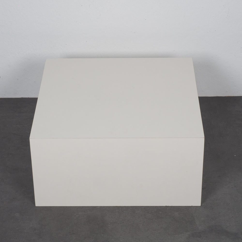 The white base acts as the connecting factor between the white and gray of the other art and decorative objects, giving the composition a sense of unity and coherence.
