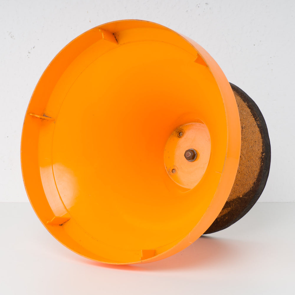 Let yourself be enchanted by this large colorful painting, created by the talented artist Wulf. This abstract artwork in vibrant shades of orange, dark blue and black will undoubtedly be a striking addition to your interior. The painting is signed by the artist himself and has dimensions of 103 x 103 x 3 cm. Framed in a metal frame, it provides a modern look and extra durability. Despite some signs of use and a small dent at the top of the metal frame, the painting is otherwise in good condition. However, these small imperfections do not detract from the beauty and liveliness of the artwork itself.
