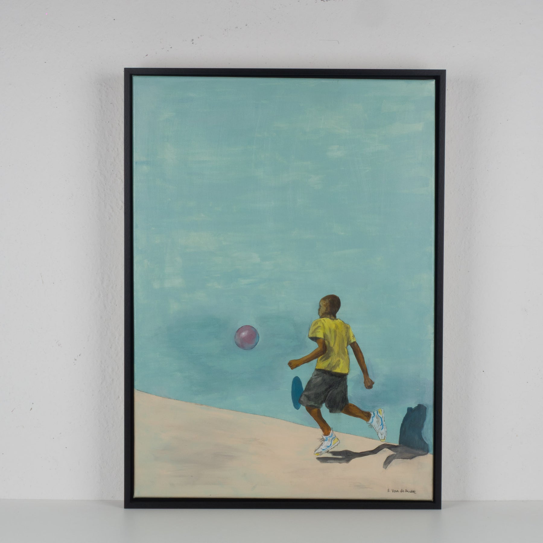 Bring movement, lightness, and fresh color into your interior with this beautiful blue painting of a young soccer player , painted by Atelier S. Stylishly presented in a sleek black frame , the work measures 53x73x4 cm and depicts a boy moving toward a ball with full concentration and energy. The artist captures the moment of playful dynamism with a keen sense of light, shadow, and posture.