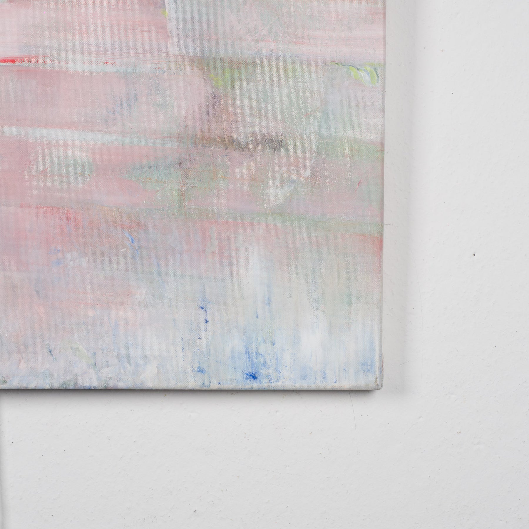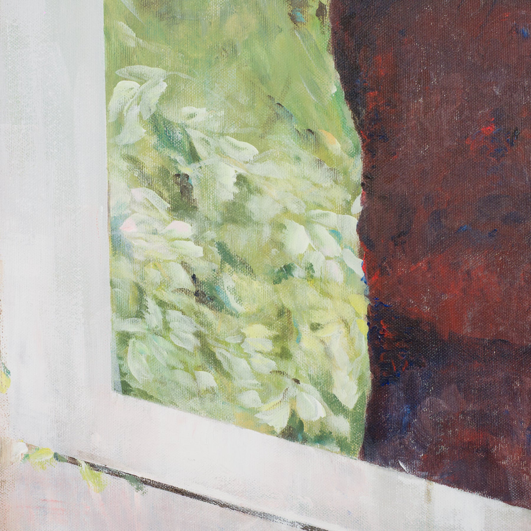 Painting by Rita Pollet – man looking through the window in soft pastel shades