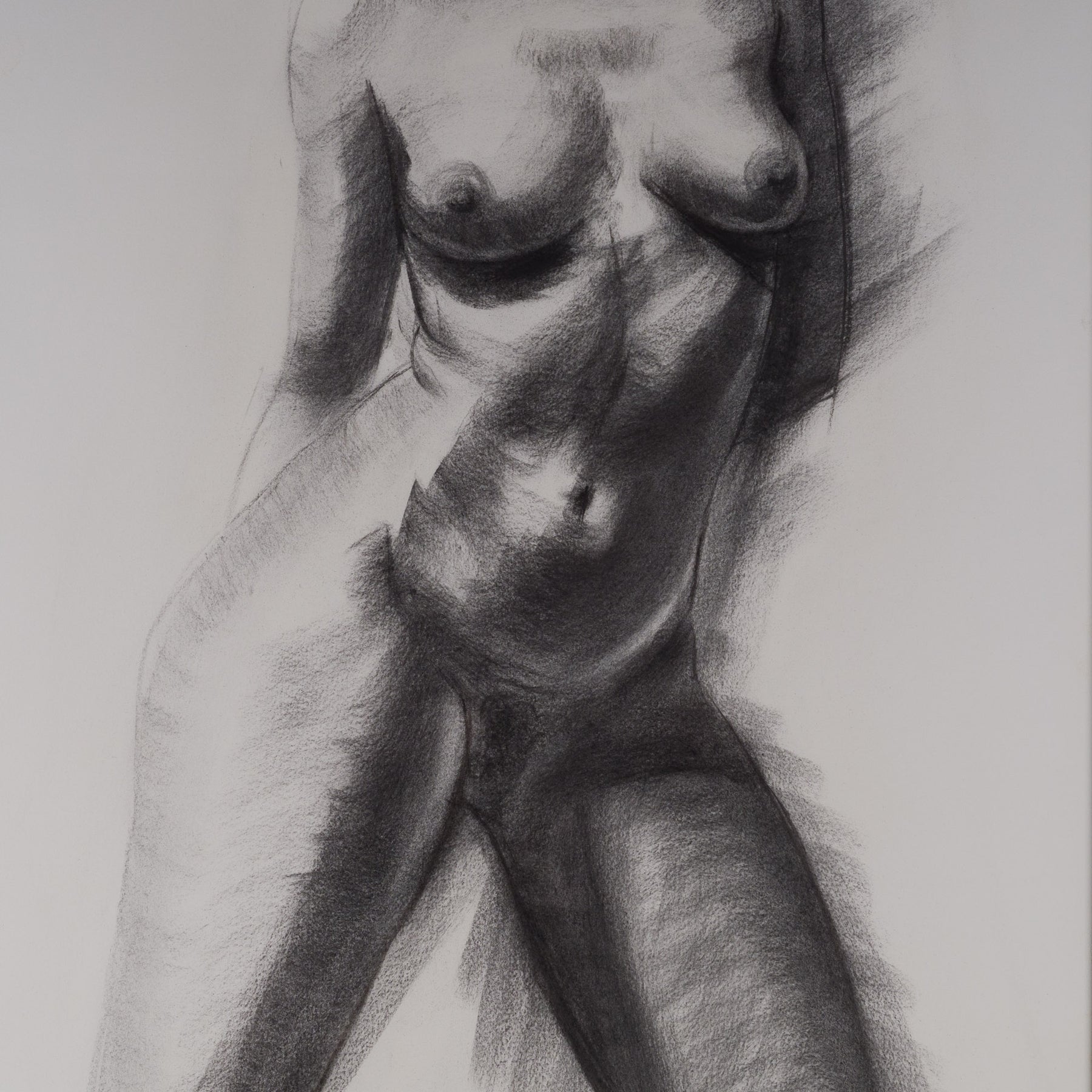 A beautiful drawing by the renowned West Flemish artist Irénée Duriez , known for his sensitive and refined depiction of the female form. This elegant depiction depicts a nude woman , executed in shades of black, in which Duriez's characteristic balance of strength and softness is clearly evident.
